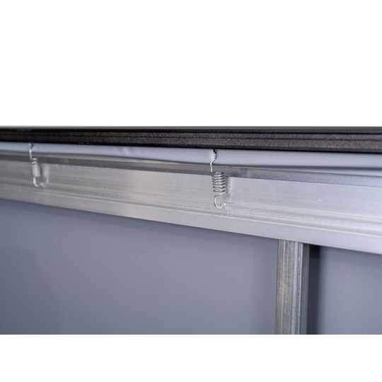 Rám plátna je potažen černým semišem pro pohlcení okolního světla a vyniknutí barev projekce.