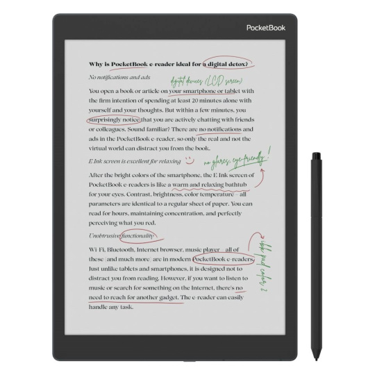 - Velký barevný displej 10,3” E Ink Kaleido™ 3, bezpečný pro oči