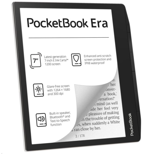 Samozřejmostí je vestavěný reproduktor, díky němuž můžete poslouchat audioknihy. Pocket Book Era umí také nahlas předčítat texty až v 26 jazycích. Prostřednictvím Bluetooth si k ní můžete připojit bezdrátová sluchátka a další praktické doplňky.
