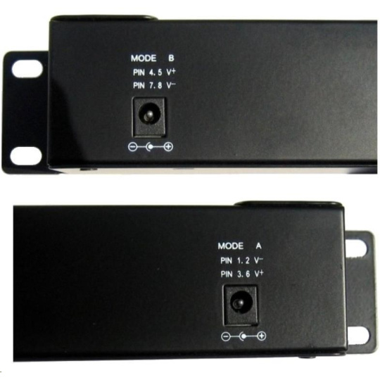 | Napájecí páry: | Režim A) 4/5+ & 7/8- (48V) Režim B) 1/2- & 3/6+ (48V) |