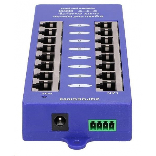 Pasivní POE injektor - 8x 1Gb/s, stíněný, svorkovnice