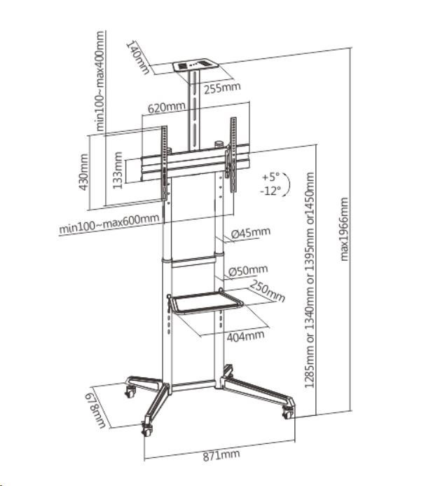 - Rozsah výškového nastavení1285, 1340, 1395 nebo 1450mm
