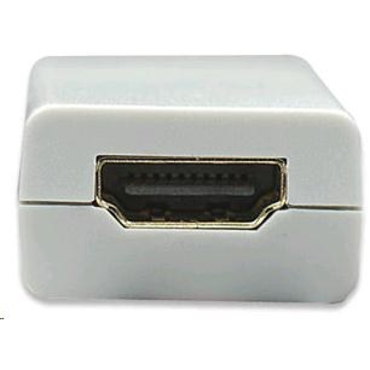 Tento adaptér umožňuje propojit novou generaci notebooků MacBook, MacBook Pro, or MacBook Air vybavených Mini DisplayPort výstupem s LCD nebo televizí. Mini DisplayPort 20-pin plug <=> HDMI Type A (19-pin) jack • zastříknuté provedení , délka 15cm • kabel dvakrát stíněný, AWG32 • podporuje HDMI nejvyšší video rozlišení 1080p • podporuje HDMI 12bit na kanál (36bit všechny kanály) deep color • podporuje nekompresované audio jako je LPCM • podporuje kompresované audio jako je DTS Digital, Dolby Digital (také: DTS-HD a Dolby True HD) • Napájení z Mini DisplayPort sběrnice • Barva: bílá.