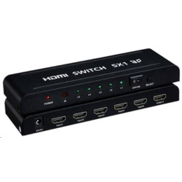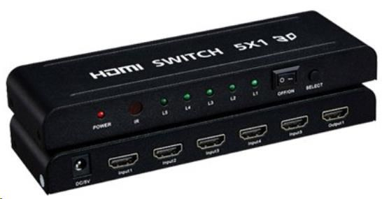 PREMIUMCORD HDMI switch 5:1 kovový s dálkovým ovladačem a napájecím adaptérem
