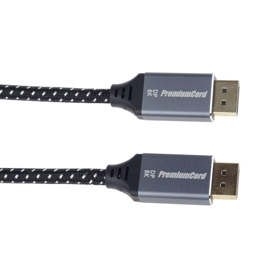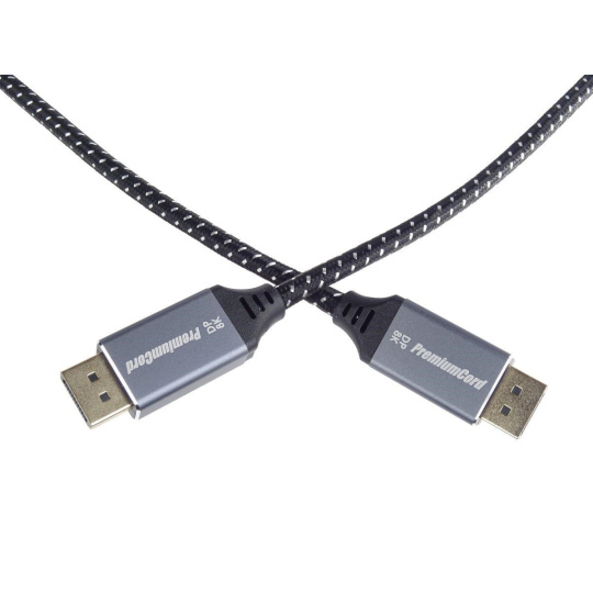 PremiumCord DisplayPort 1.4 přípojný kabel M/M pro rozlišení 8K, kovové krytky a zlacené konektory, 0,5m
