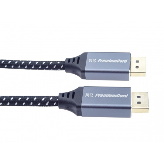 PremiumCord DisplayPort 1.4 přípojný kabel M/M pro rozlišení 8K, kovové krytky a zlacené konektory, 3m