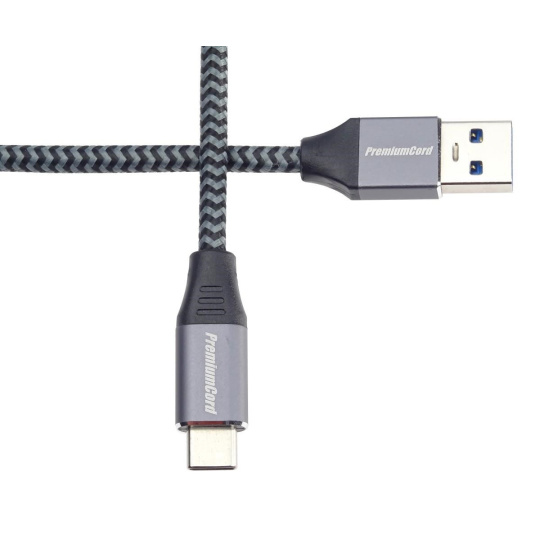 PremiumCord kabel USB-C - USB 3.0 A (USB 3.1 generation 1, 3A, 5Gbit/s) 0,5m bavlněný oplet a kovové hliníkové konektory