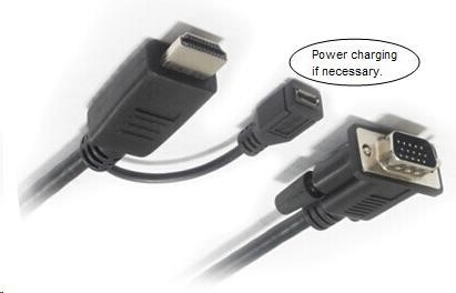 Kabelový převodník HDMI na VGA s napájecím micro USB konektorem - černý - Adaptér je určen pro počítače nebo notebooky s výstupem HDMI, pro převod obrazu na analogové VGA. - Vstup: HDMI konektor - male (kompatibilní s HDMI 1.4 a DVI 1.0 ) - Výstup: VGA konektor DB15 - female (kompatibilní s VESA VSIS v1r2 specification) - Převodník umožňuje propojit zařízení s výstupním signálem HDMI na zobrazovací zařízení nebo TV, monitor s VGA konektorem - Podporuje: HDCP1.0/1.1/1.2; HDMI1.1/1.2/1.3; - Technologie Plug and play; - Podporuje rozlišení: 480i/576i / 480p / 576p / 720p/1080i / 1080p / 60Hz; VGA výstup: 480i/576i / 480p / 576p / 720p/1080i / 1080p / 60Hz - Podporuje FULL HD 1080P (1920*1080P@60Hz) - Maximální rozlišení 1920*1200@60Hz. - Malá spotřeba: 130mA. - Napájení s HDMI (5V). - V případě nutnosti, pokud nestačí napájení z HDMI portu, použijte napájení adaptéru pomocí USB kabelu s micro USB konektorem, který zapojíte do micro USB tohoto převodníku (např.ku2m05f) Dálší možností přídavného napájení je použít napájecí adaptér 230V - 5V/1A s micro USB konektorem - Délka 2m - Barva: černá.