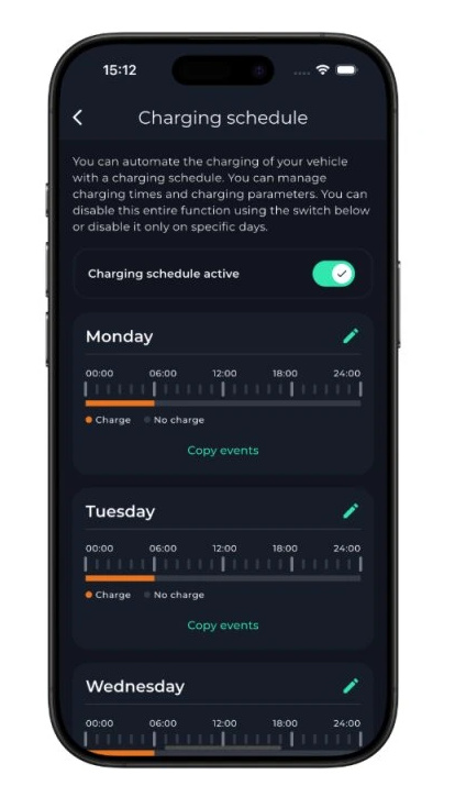 V případě, že preferujete offline verzi, budete mít možnost Vaše nabíjení řídit v mobilní aplikaci přes Bluetooth. Pokud se rozhodnete, že potřebujete Wi-Fi konektivitu, můžete ji jednoduše zakoupit v aplikaci. Jako další možnosti nabízíme verzi s Bluetooth a Wi-Fi konektivitou, která umožňuje ovládání nabíjení tam, kde je dostupné internetové připojení. Nejvyšší variantou je verze s Bluetooth, Wi-Fi a LTE, což Vám umožní plnou kontrolu nad nabíjením odkudkoli v EU.