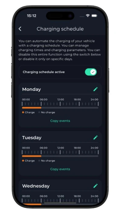 V případě, že preferujete offline verzi, budete mít možnost Vaše nabíjení řídit v mobilní aplikaci přes Bluetooth. Pokud se rozhodnete, že potřebujete Wi-Fi konektivitu, můžete ji jednoduše zakoupit v aplikaci. Jako další možnosti nabízíme verzi s Bluetooth a Wi-Fi konektivitou, která umožňuje ovládání nabíjení tam, kde je dostupné internetové připojení. Nejvyšší variantou je verze s Bluetooth, Wi-Fi a LTE, což Vám umožní plnou kontrolu nad nabíjením odkudkoli v EU.
