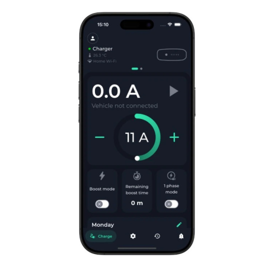 V případě, že preferujete offline verzi, budete mít možnost Vaše nabíjení řídit v mobilní aplikaci přes Bluetooth. Pokud se rozhodnete, že potřebujete Wi-Fi konektivitu, můžete ji jednoduše zakoupit v aplikaci. Jako další možnosti nabízíme verzi s Bluetooth a Wi-Fi konektivitou, která umožňuje ovládání nabíjení tam, kde je dostupné internetové připojení. Nejvyšší variantou je verze s Bluetooth, Wi-Fi a LTE, což Vám umožní plnou kontrolu nad nabíjením odkudkoli v EU.