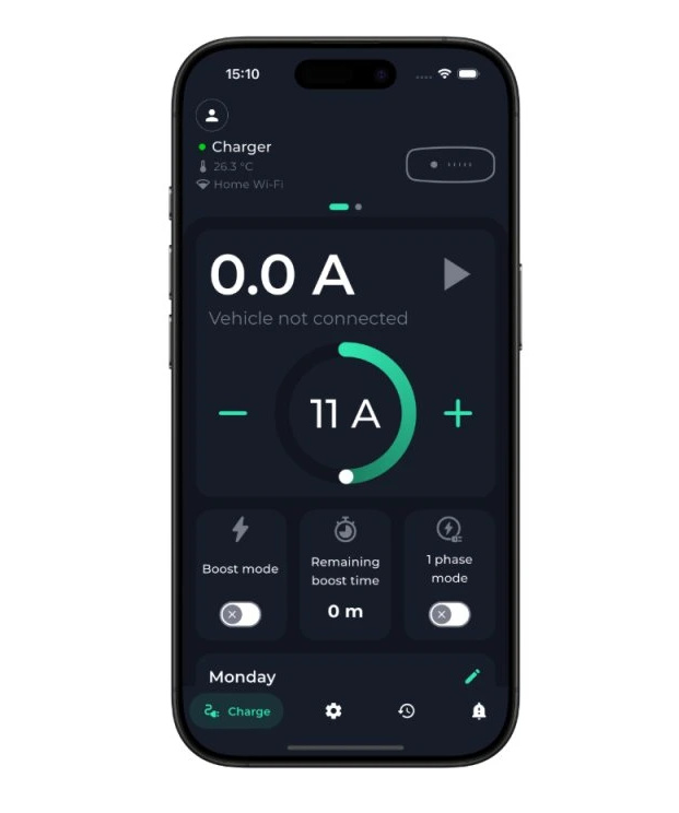 V případě, že preferujete offline verzi, budete mít možnost Vaše nabíjení řídit v mobilní aplikaci přes Bluetooth. Pokud se rozhodnete, že potřebujete Wi-Fi konektivitu, můžete ji jednoduše zakoupit v aplikaci. Jako další možnosti nabízíme verzi s Bluetooth a Wi-Fi konektivitou, která umožňuje ovládání nabíjení tam, kde je dostupné internetové připojení. Nejvyšší variantou je verze s Bluetooth, Wi-Fi a LTE, což Vám umožní plnou kontrolu nad nabíjením odkudkoli v EU.