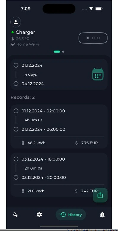 - exportování historie nabíjení