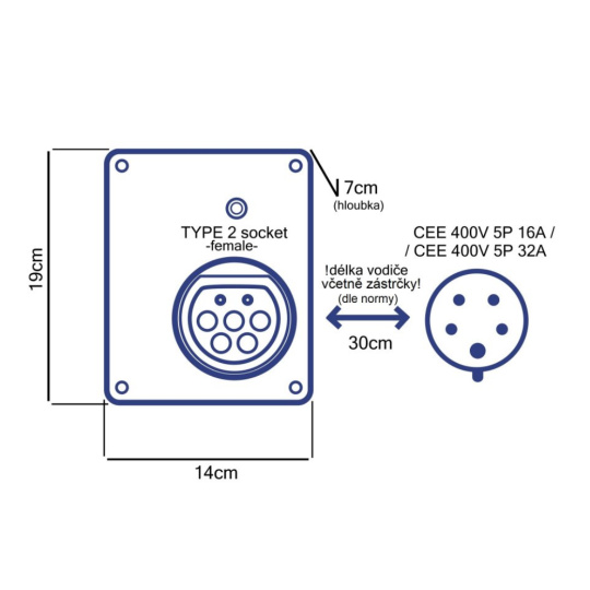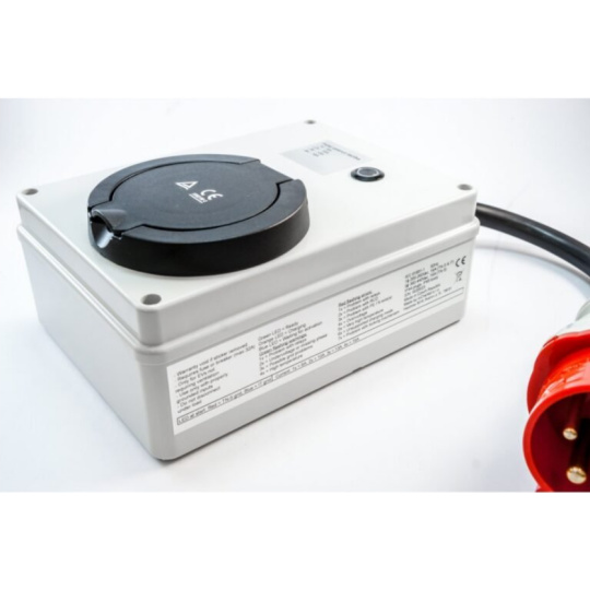 22kW verze pasuje do velké 32A červené průmyslové zásuvky.