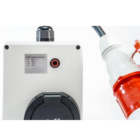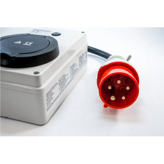 11kW verze pasuje do malé 16A červené průmyslové zásuvky.