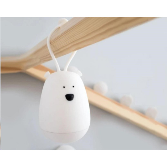 Lampička v podobě roztomilého medvídka, vyrobená z měkkého, bezpečného, certifikovaného a zdravotně nezávadného silikonu, je ideální první lampičkou i pro nejmenší děti, nočním světýlkem i snadno přenosnou lampičkou pro noční návštěvy toalety, na cesty. Dětskou lampičku jednoduše pomocí silikonové spony připevníte na rám postýlky a stejně jednoduše ji v případě potřeby sundáte.