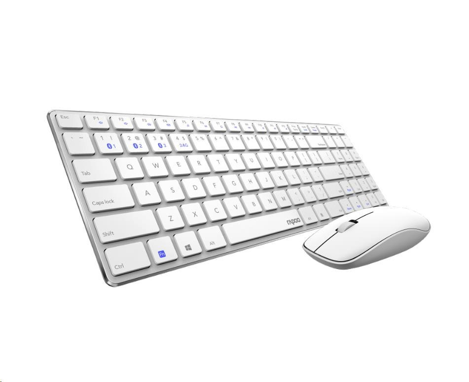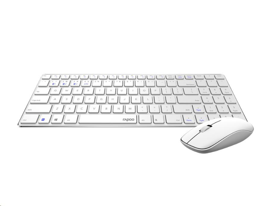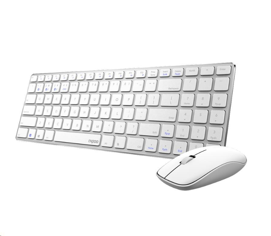 RAPOO set klávesnice a myš 9300M, bezdrátová, Multi-Mode Slim Mouse, Ultra-Slim Keyboard, bílá