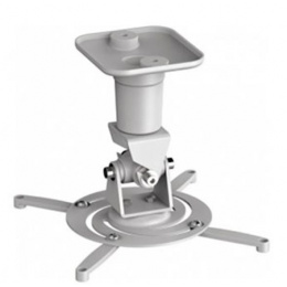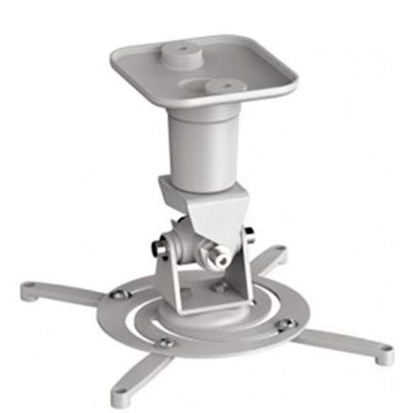 Stropní držák na dataprojektory - vzdálenost od stropu 22cm, přístroj lze otočit o 360° a naklonit +/-25°, maximální zatížení 15kg, kabelový prostup, vhodné i pro uchycení na šikmé plochy, bílý. Univerzální systém uchycení dataprojektorů (rozsah 18-31 cm)..