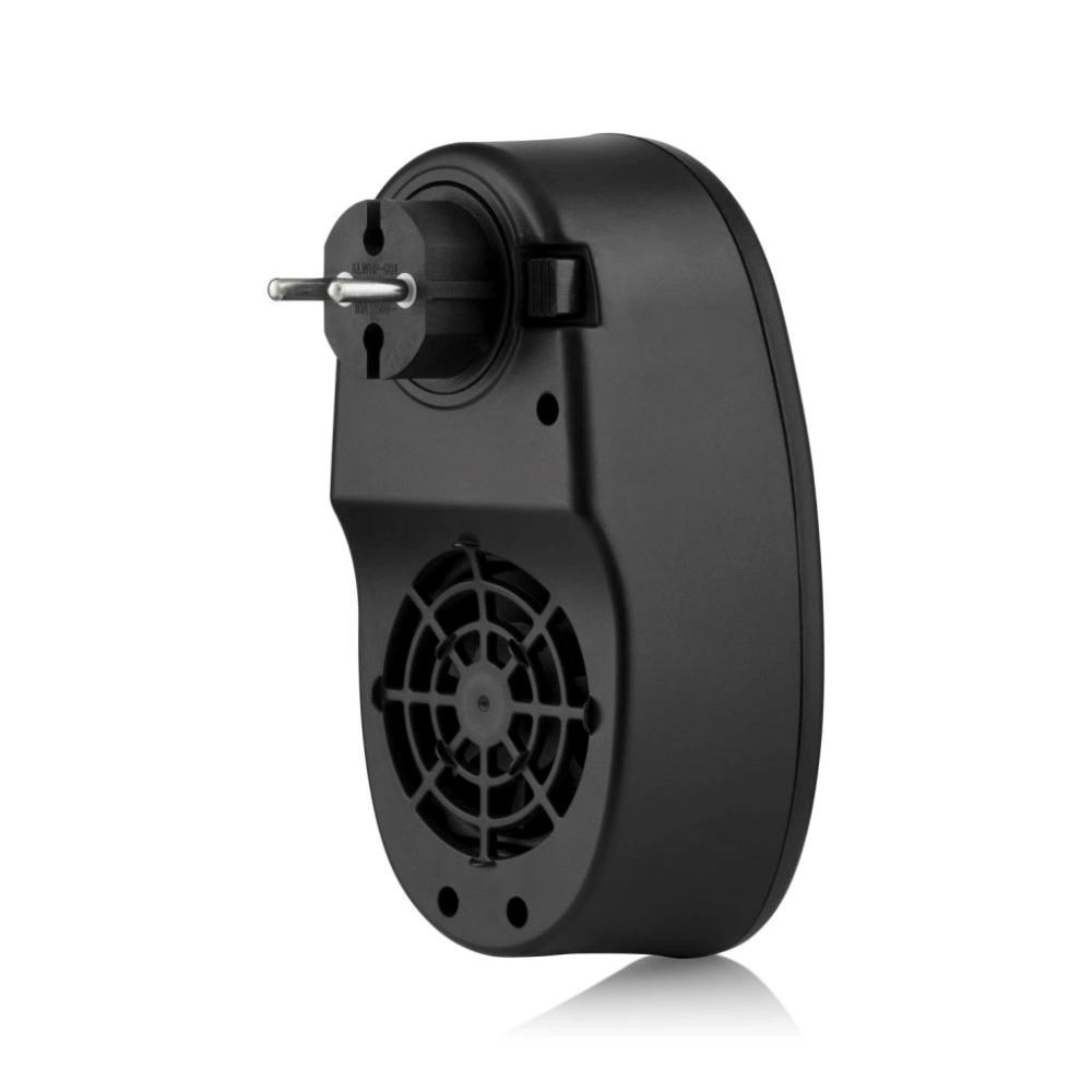 Integrovaný ventilátor tohoto kompaktního topidla má průměr 53 mm a nabízí 2 rychlosti (4500 a 5000 otáček za minutu), takže se hravě přizpůsobí různým situacím. Nižší rychlost např. využijete pro klidnou práci u počítače, kde nechcete rušivé proudění vzduchu, zatímco vyšší rychlost je skvělá třeba pro rychlé vytopení právě vyvětrané místnosti nebo pro okamžité zahřátí po příchodu z venku. Přístroji nechybí ani klasický vypínač, který umožňuje ventilátor zapnout či vypnout bez vytahování ze zásuvky.