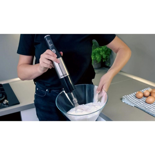 - Speciální kombinace ergonomie a vroubkovaného povrchu úchopové části mixéru zajišťuje pevný úchop v každé situaci