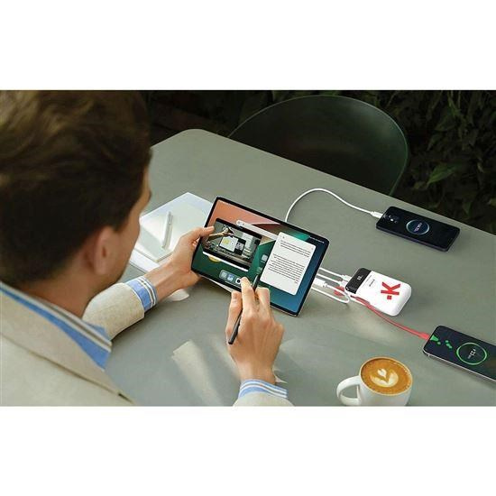 Powerbanka má ergonomický tvar a nízkou hmotnost, to z ní dělá ideálního společníka na cesty. Integrovaný USB-C kabel, který zároveň slouží jako praktické poutko na přenášení, usnadňuje každodenní používání. Díky displeji máte vždy přehled o dostupné energii a stavu nabíjení či dobíjení.