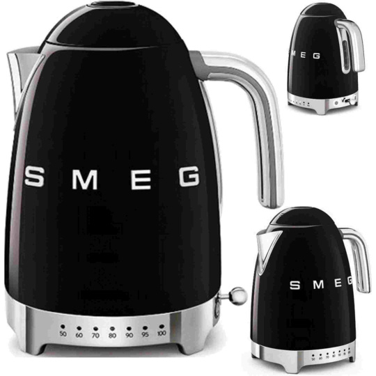 Smeg KLF04BLEU rychlovarná konvice, 1,7 l (7 šálků), 2400 W, styl 50. let, řízení teploty, 7 programů, černá