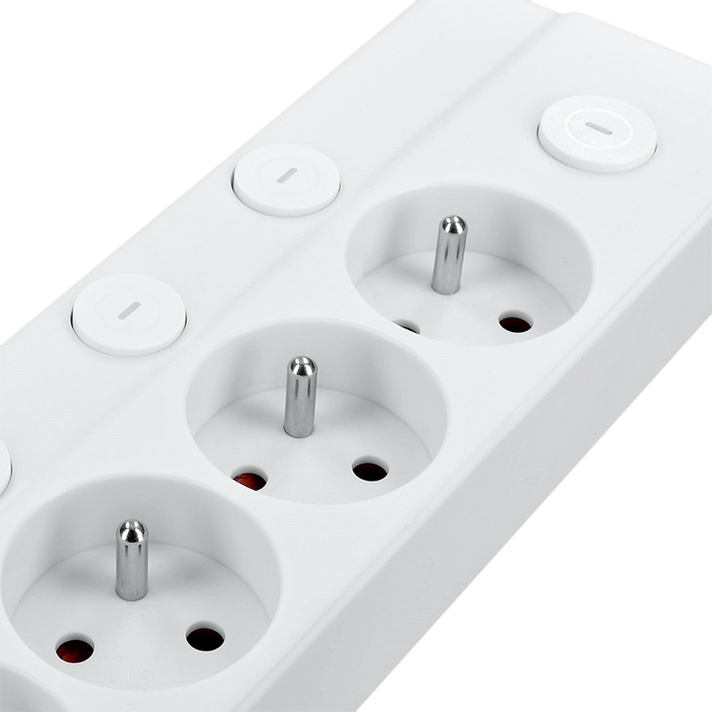 - Proodlužovací přívod se samostatnými vypínači pro každou zásuvku. Plus centrální vypínač ovládá všechny zásuvky najednou. Resetovatelný jistič při přetížení zásuvkového pole přeruší napájení. Poté je možné prodlužovací přívod opět zprovoznit.