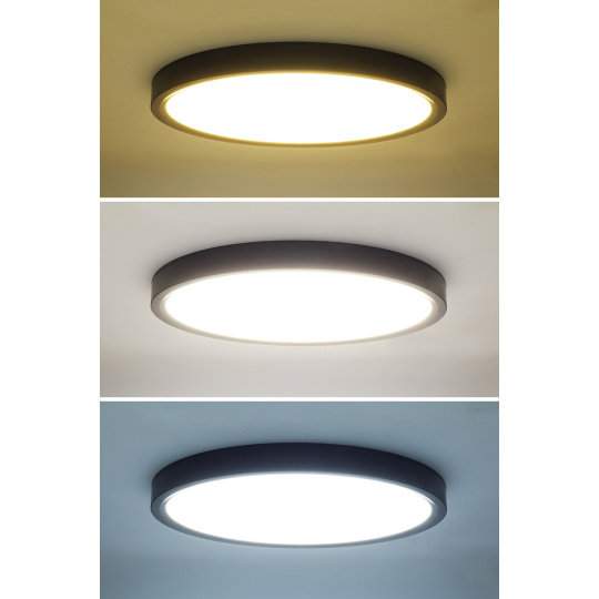 LED stropní svítidlo Estela v černém tenkém provedení je ideálním řešením pro moderní interiéry. Díky dálkovému ovladači můžete plynule regulovat jas, měnit barevnou teplotu světla (3000K–6500K) a volit mezi přednastavenými režimy. Maximální příkon 36W a světelný tok až 2700 lm (při 4000K) zajišťují dostatek světla pro každodenní použití.
