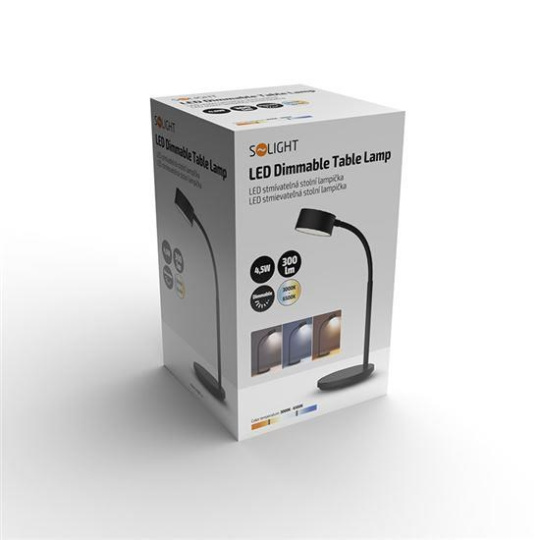 Solight LED stolní lampička, 4,5W, 300lm, 3CCT, černá, podstavec