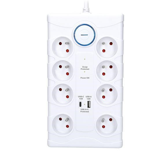 Přepěťová ochrana s USB nabíječkou a 8 zásuvkami