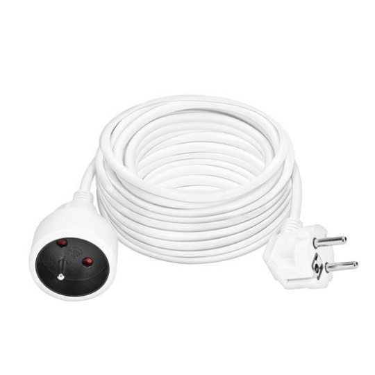 Kompaktní bílý prodlužovací kabel s délkou 10 metrů a jednou zásuvkou je ideální pro jednoduché prodloužení elektrické energie v domácnosti, kanceláři nebo dílně. Vhodný pro připojení samostatného zařízení mimo dosah pevné zásuvky.