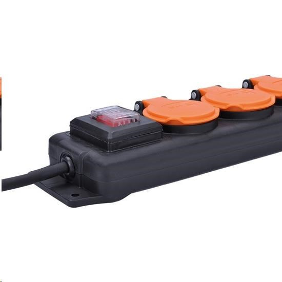 gumový kabel počet zásuvek: 4 průřez vodičů: 3 x 1,5mm2 typ kabelu: H05RR-F 3G přímá vidlice dětské pojistky barva: černá stupeň ochrany: IP44 délka: 5m 230V/16A, max. 3680W vypínač.