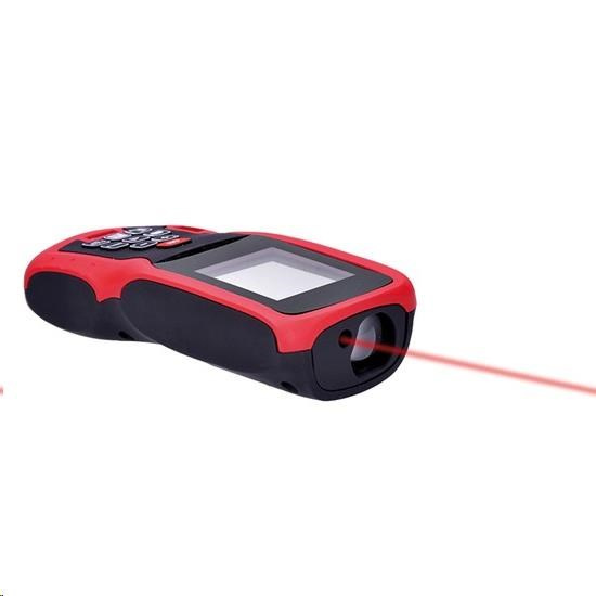 měření vzdálenosti, výpočet plochy, objemu a měření pomocí Pythagorovy věty (vypočtení délky třetí strany ze dvou známých délek stran) rozsah měření vzdálenosti: 0,05 - 80m jednotky: m, ft, in třída laseru: II, měné než 1mW typ laseru: 635nm přesnost měření ±1,5mm rozlišení: 1mm teplotní rozsah použití -10 + 50°C podsvícení displeje horizontální a vertikální vodováha pamět pro 20 posledních měření automatické vypnutí indikátor vybité baterie baterie: 2x1,5V, AAA rozměry: 125x58x30mm.