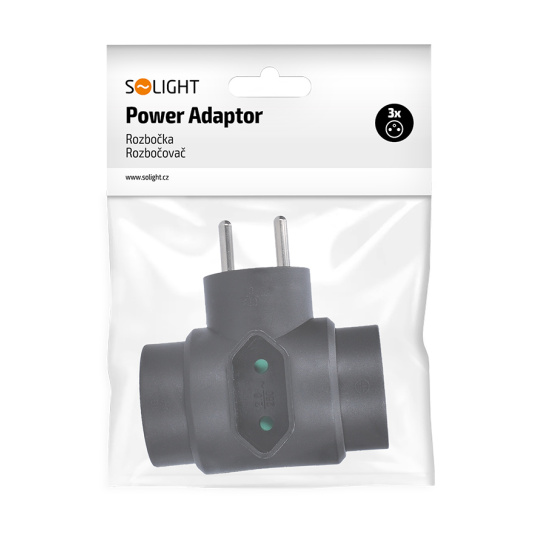 Solight rozbočka, 2,5A + 2x 10A, černá