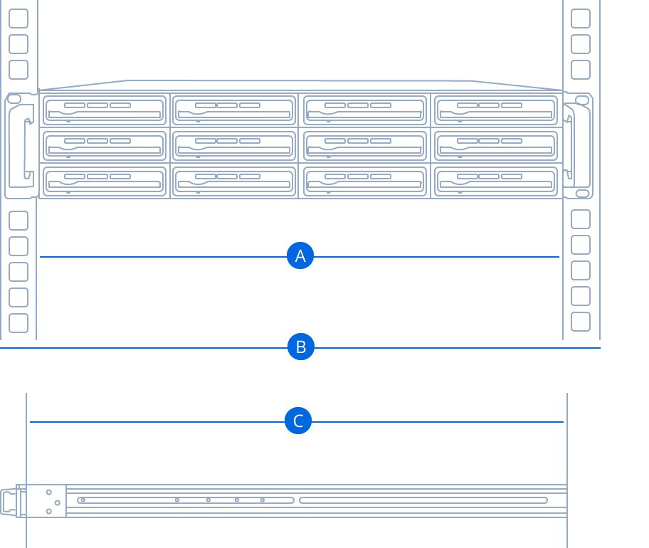 Technické údaje zařízení Synology RKM114- Šířka sloupku k upevnění na zeď musí být rovna nebo větší než 451 mm