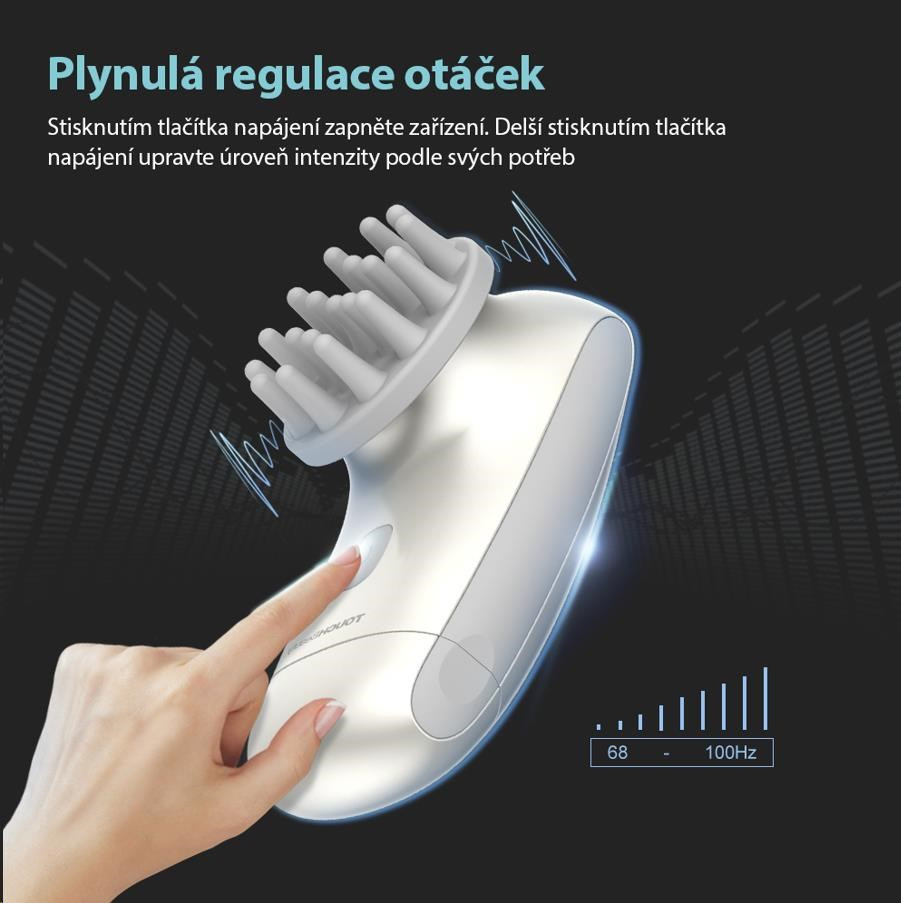 - Rychlost vibrací je nastavitelná pro přizpůsobení různým potřebám pokožky.