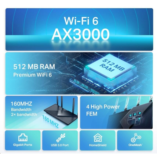 - TP-Link HomeShield – vylepšené zabezpečení na ochranu před nejnovějšími kybernetickými hrozbami.