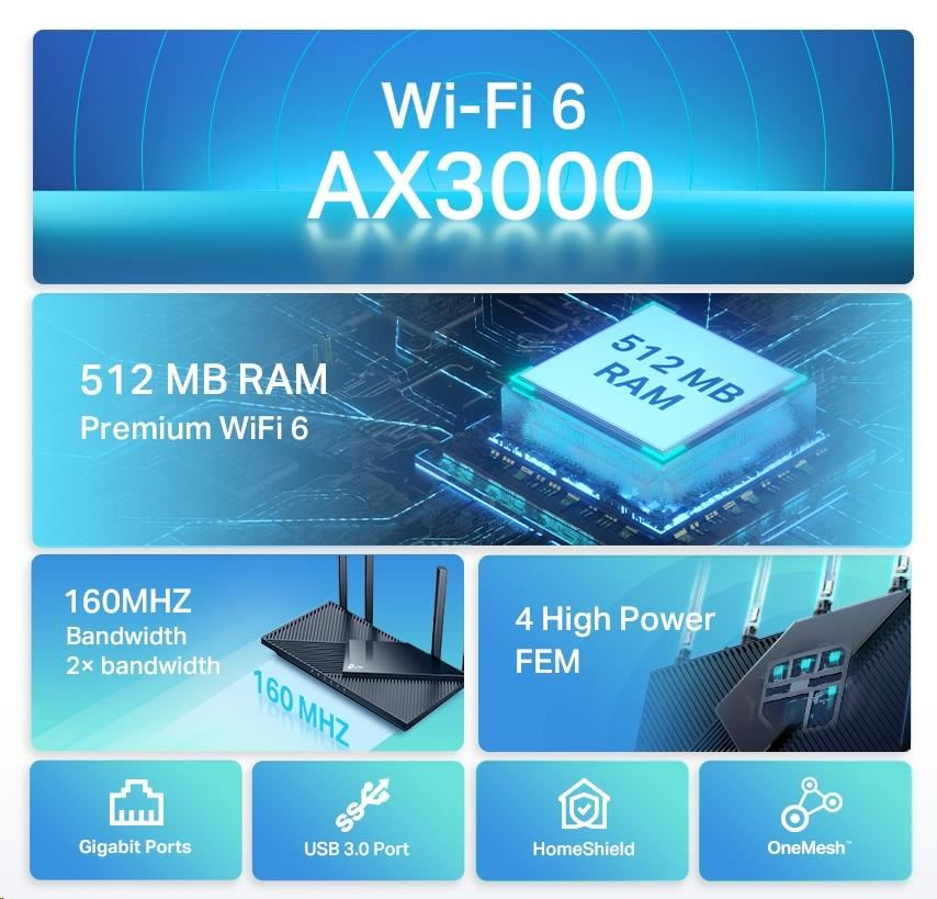 - TP-Link HomeShield – vylepšené zabezpečení na ochranu před nejnovějšími kybernetickými hrozbami.