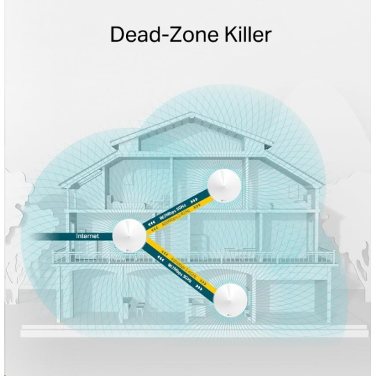 Deco je nejjednodušší cesta, jak zaručit, aby Wi-Fi signál byl silný v každém koutku vašeho domu. Užijte si rychlé a stabilní Wi-Fi připojení i pro celou armádu zařízení s pokrytím 510 m2 (tři jednotky) nebo 350 m2 (dvě jednotky). Nastavení již nemůže být snadnější díky aplikaci Deco, která vás provede jednotlivými kroky.