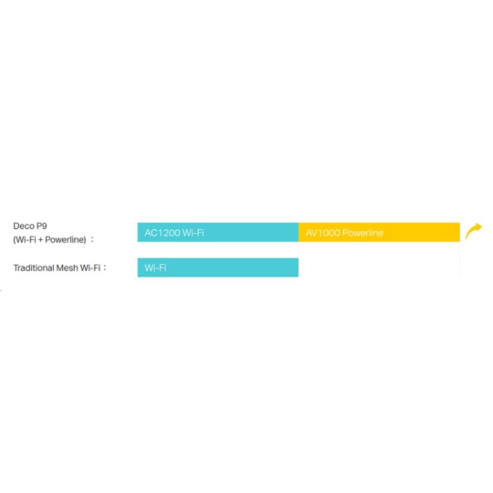 Deco P9 kombinuje duální Wi-Fi a powerline pro vytvoření silnější mesh sítě. Technologie Powerline využívá elektrické rozvody vašeho domu k vytvoření silnějšího propojení mezi jednotkami Deco tím, že snižuje dopad stěn a jiných překážek na signál a poskytuje ještě vyšší rychlosti sítě a skutečně bezproblémové pokrytí.