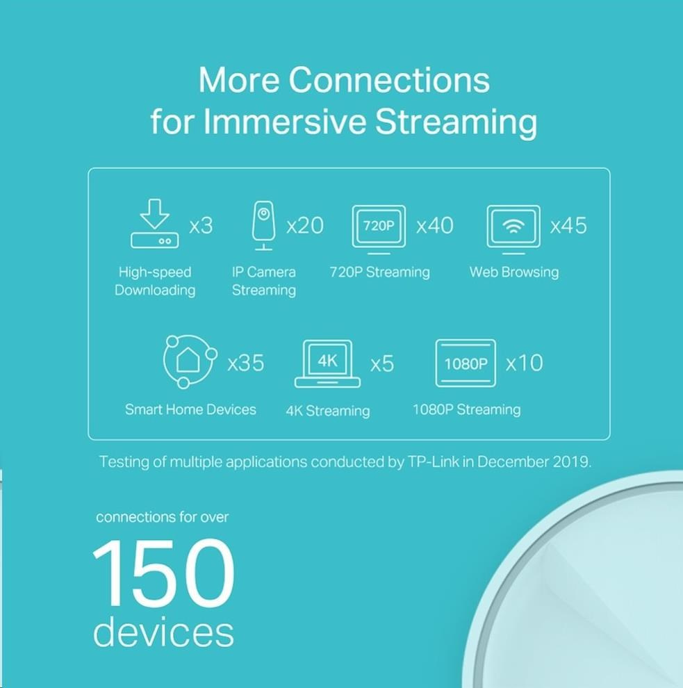 - Absolutní bezpečnost: Šifrování WPA3 a TP-Link HomeCareTM poskytují přizpůsobené funkce, včetně rodičovských kontrol, antivirů a kvality služeb (QoS), aby byl zajištěn bezpečnější online provoz.