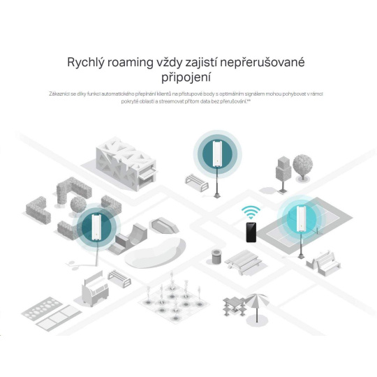 - Rychlý roaming vždy zajistí nepřerušované připojení: Uživatelé se mohou spolehnout na snadné přepínání svých zařízení mezi přístupovými body při pohybu po domě nebo například mezi kancelářemi.