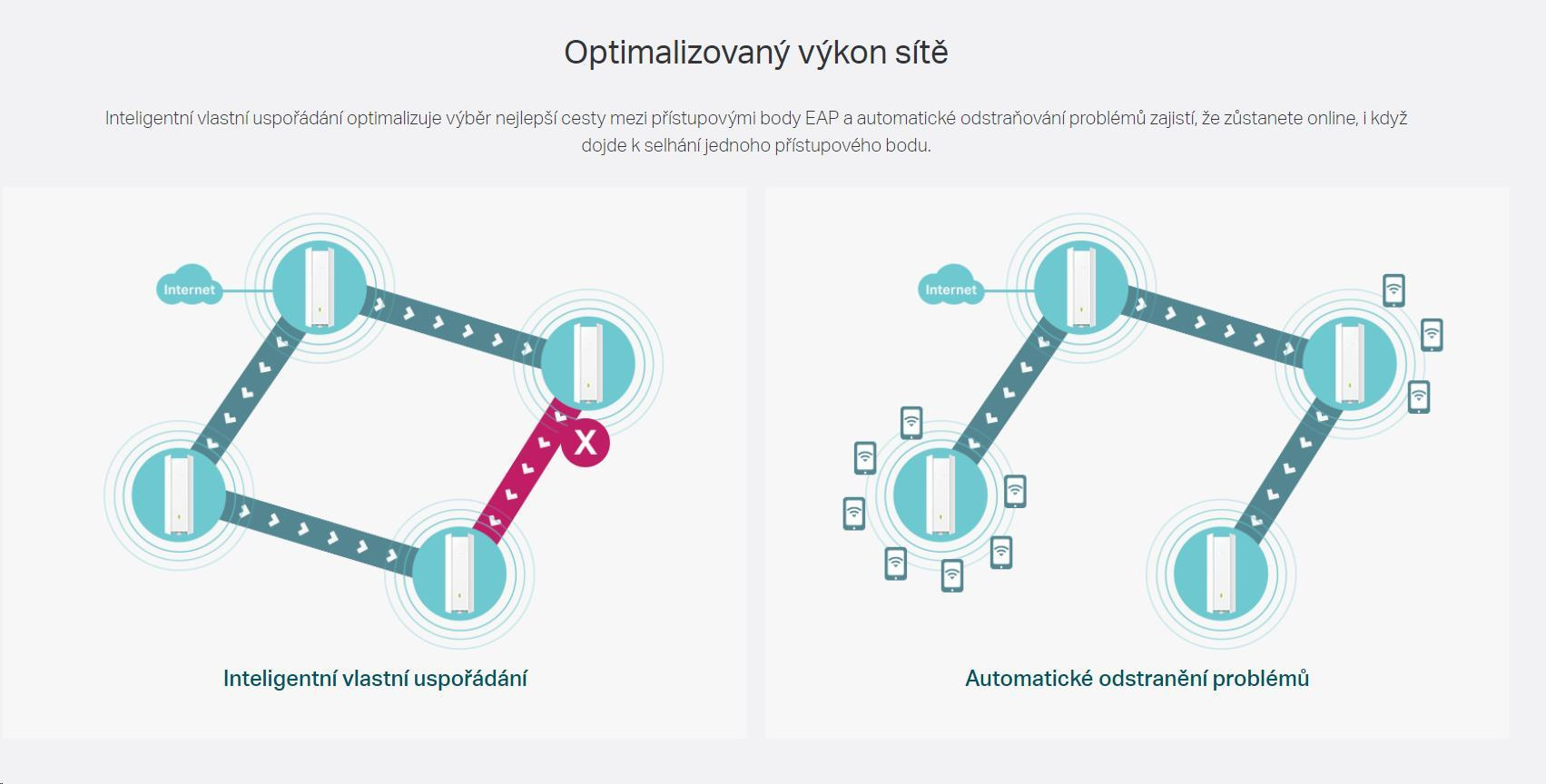 - Technologie Omada Mesh: Umožňuje bezdrátovou konektivitu mezi přístupovými body k získání prodlouženého dosahu a flexibilního nasazení.