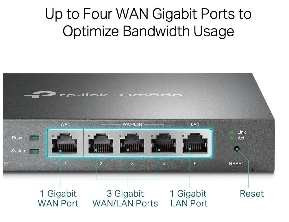 - Až 4 porty WAN: 1 gigabitový port WAN a 3 gigabitové porty WAN/LAN s funkcí vyrovnávání zatížení zvyšují míru využití vícelinkového širokopásmového připojení.