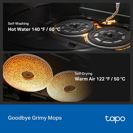- Sušení mopu teplým vzduchem 50 °C – Automaticky suší mopy pro urychlení údržby a zabránění zápachu.