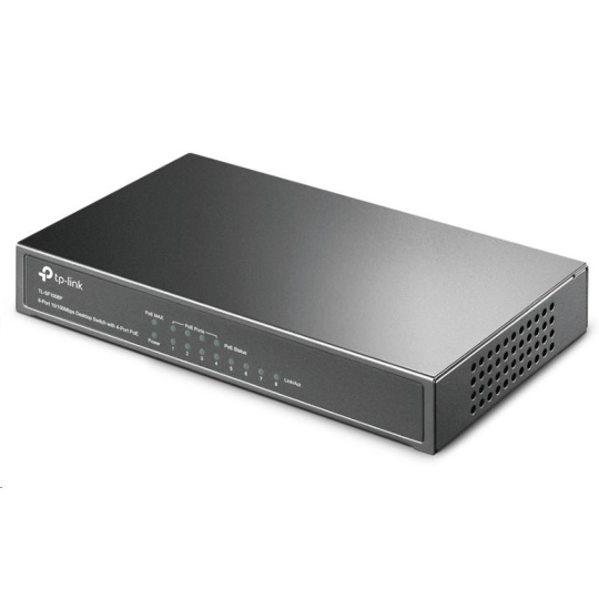 TP-Link switch TL-SF1008P, 8x 10/100Mb/s RJ45, 4x PoE+ 66W, fanless