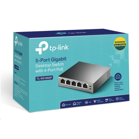 TP-Link switch TL-SG1005P, 5xGbE RJ45, 4x PoE+ 65W, fanless