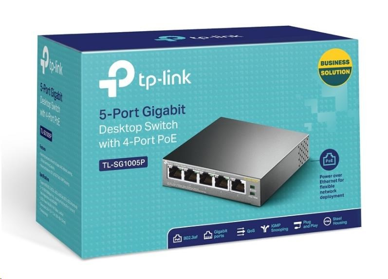 TP-Link switch TL-SG1005P, 5xGbE RJ45, 4x PoE+ 65W, fanless