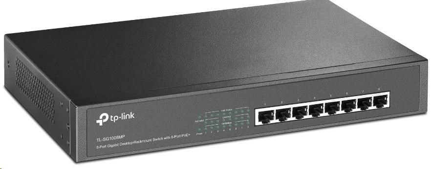 TL-SG1008MP je 8portový gigabitový stolní/rackový switch, přičemž všech 8 portů podporuje standard napájení PoE+. Zařízení představuje snadné řešení, jak rozšířit kabelovou síť, neboť umožňuje přenášet napájení i data pomocí jediného ethernetovém kabelu. S celkovým rozpočtem napájení 153 W, tzn. až 30 W na každý port, switch TL-SG1008MP dokáže napájet větší počet zařízení s vysokým odběrem, jako jsou přístupové body, IP kamery nebo IP telefony. Navíc s inovativní technologií úspory energie je switch TL-SG1008MP schopen snížit spotřebu energie, což z něj činí ekologické řešení pro vaši podnikovou síť.
