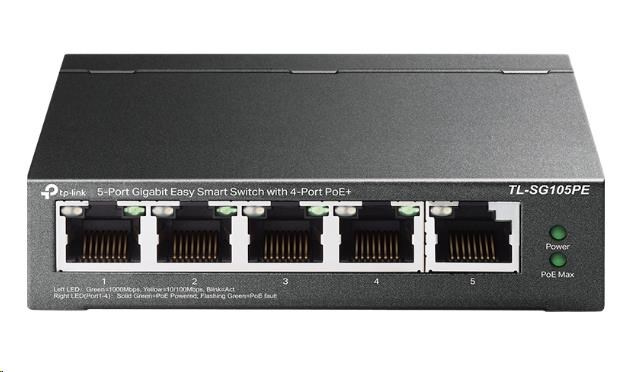TP-Link switch TL-SG105PE, 5xGbE RJ45, 4x PoE+ 65W, fanless